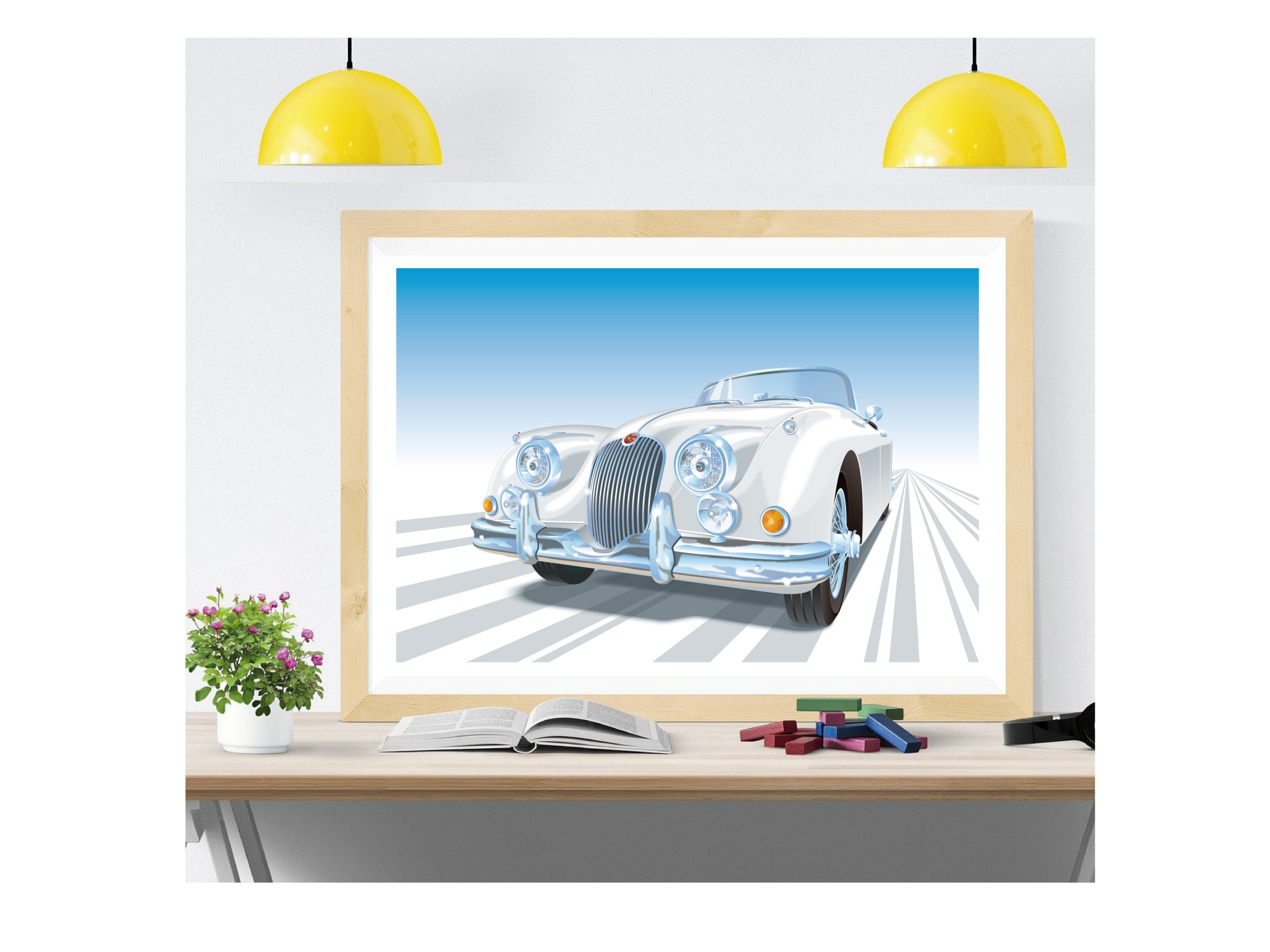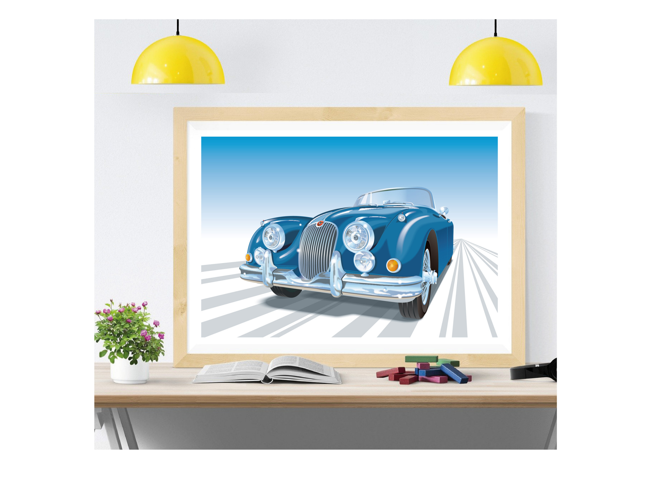 Jaguar XK-150 Drophead Coupé Vintage Classic British Sportscar Illustration Wall Art Print Gift, Poster, Choice of colours, A4, A3, A2 sizes