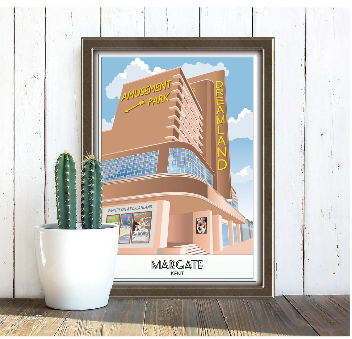 Dreamland 2, Margate, Sunshine Cafe, Cinema, Amusements, Kent, Travel Railway Poster, Print, Vintage, Gift, Art Deco, A4, A3, A2 in Retro style