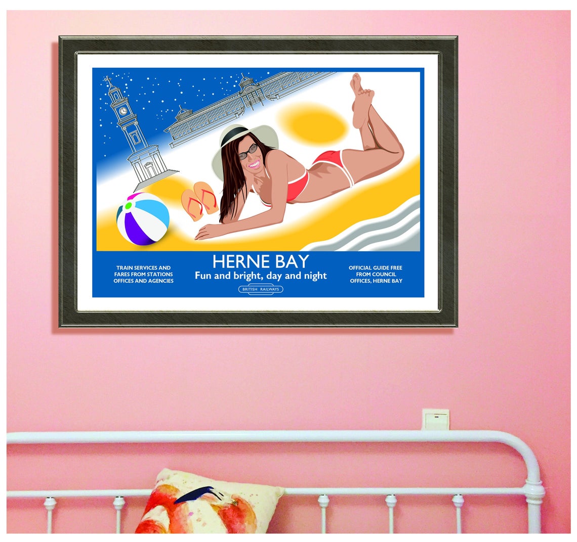 Herne Bay Beach, Seafront, Clock Tower, Central Bandstand, Kent, Travel/Railway Poster, Print, Souvenir, Gift, A4, A3, A2 in 1960's style