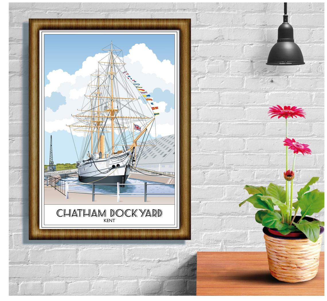 Chatham Historic Dockyard 2, HMS Gannet, Kent, Travel/Railway Poster, Print, Vintage, Souvenir, Gift, Poster, A4, A3, A2 in Retro style
