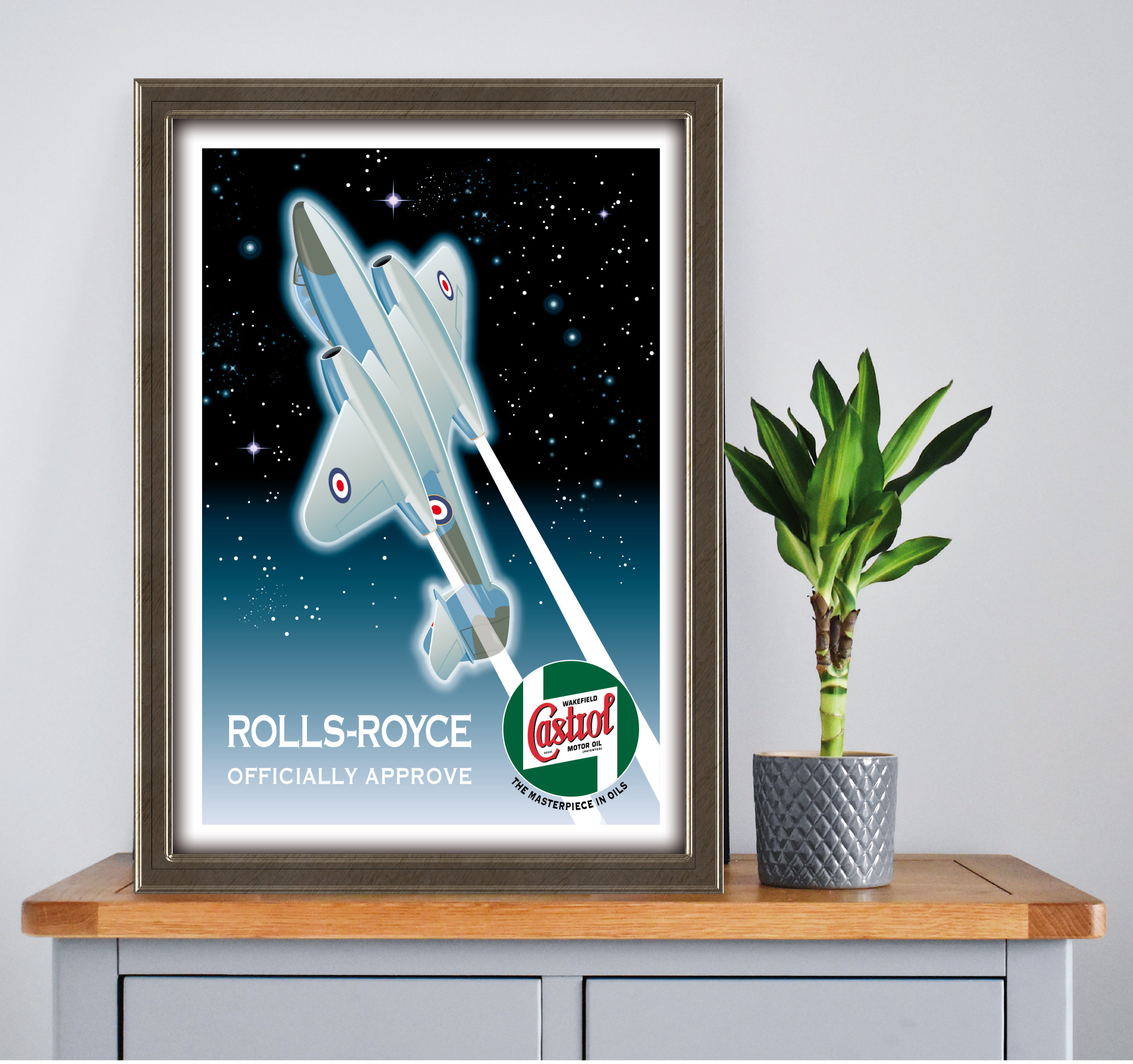 Vintage Style 1950's, Gloster Meteor Castrol Advert Poster, Festival of Britain, Print, Retro Gift, A4, A3, A2 sizes