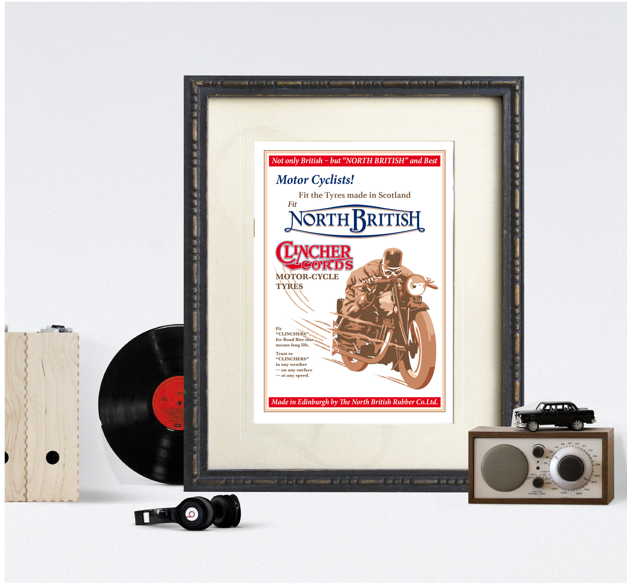 Vintage Style 1920's/1930's Clincher Scottish Motorcycle Tyre Advert Poster, Print, Souvenir, Gift, Poster, A4, A3, A2 in Retro style
