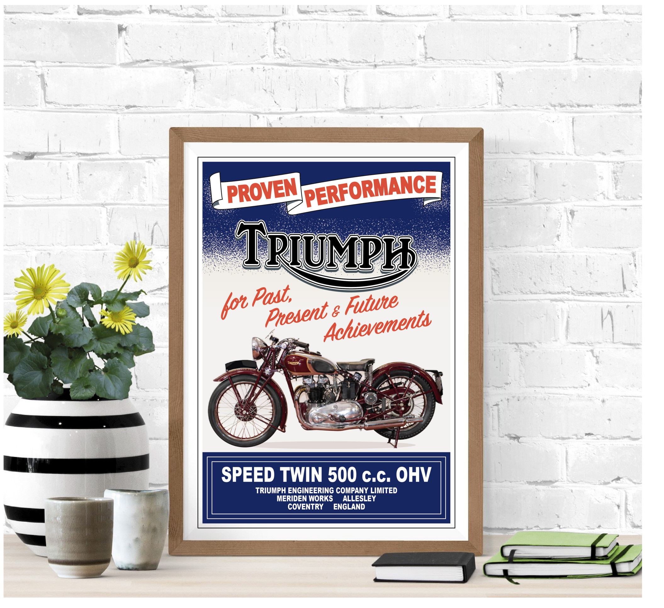 Vintage Style 1940's Triumph Speed Twin Motorcycle, Advert Poster, Print, Souvenir, Gift, Garage, Poster, A4, A3, A2 in Retro style