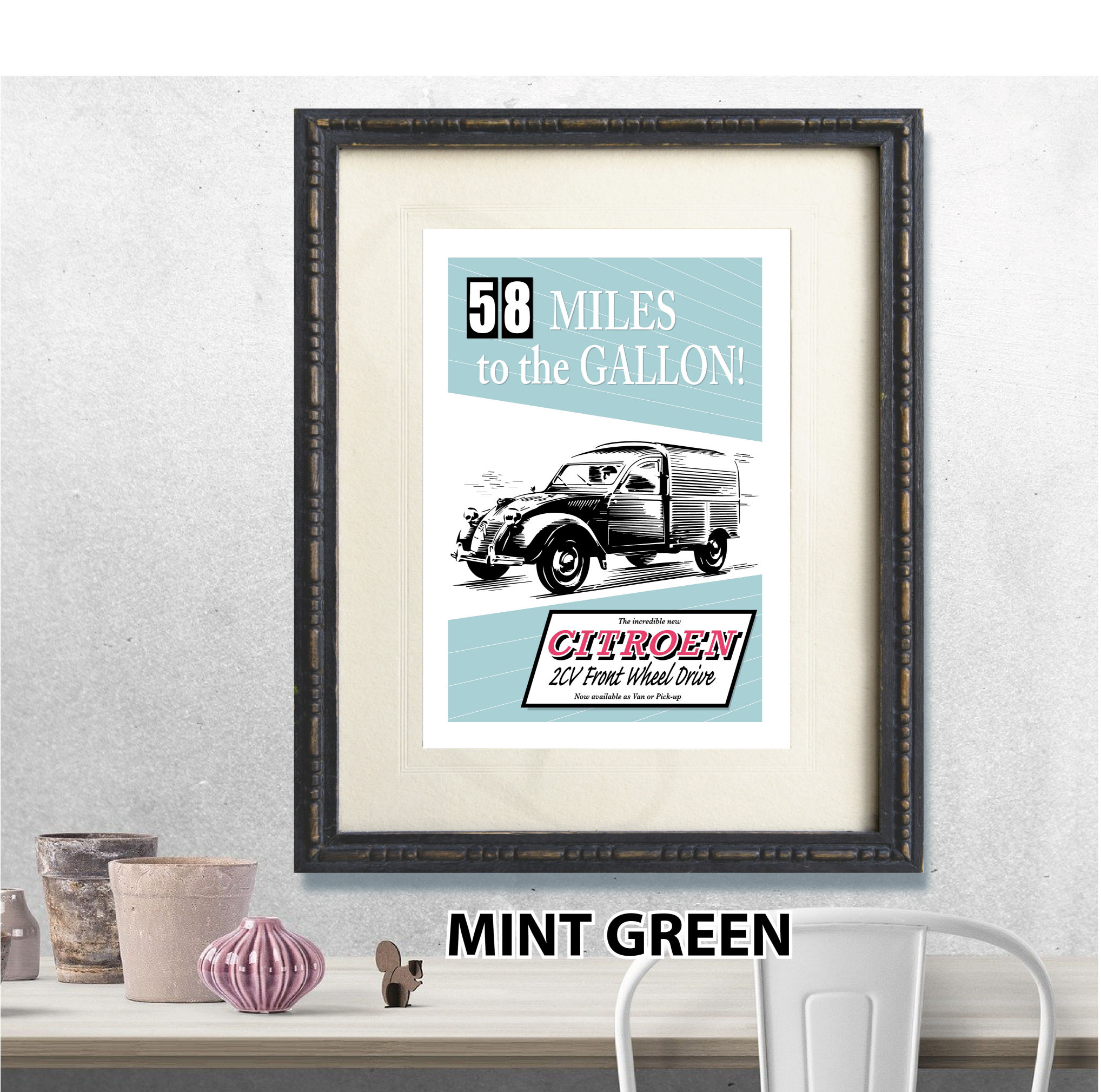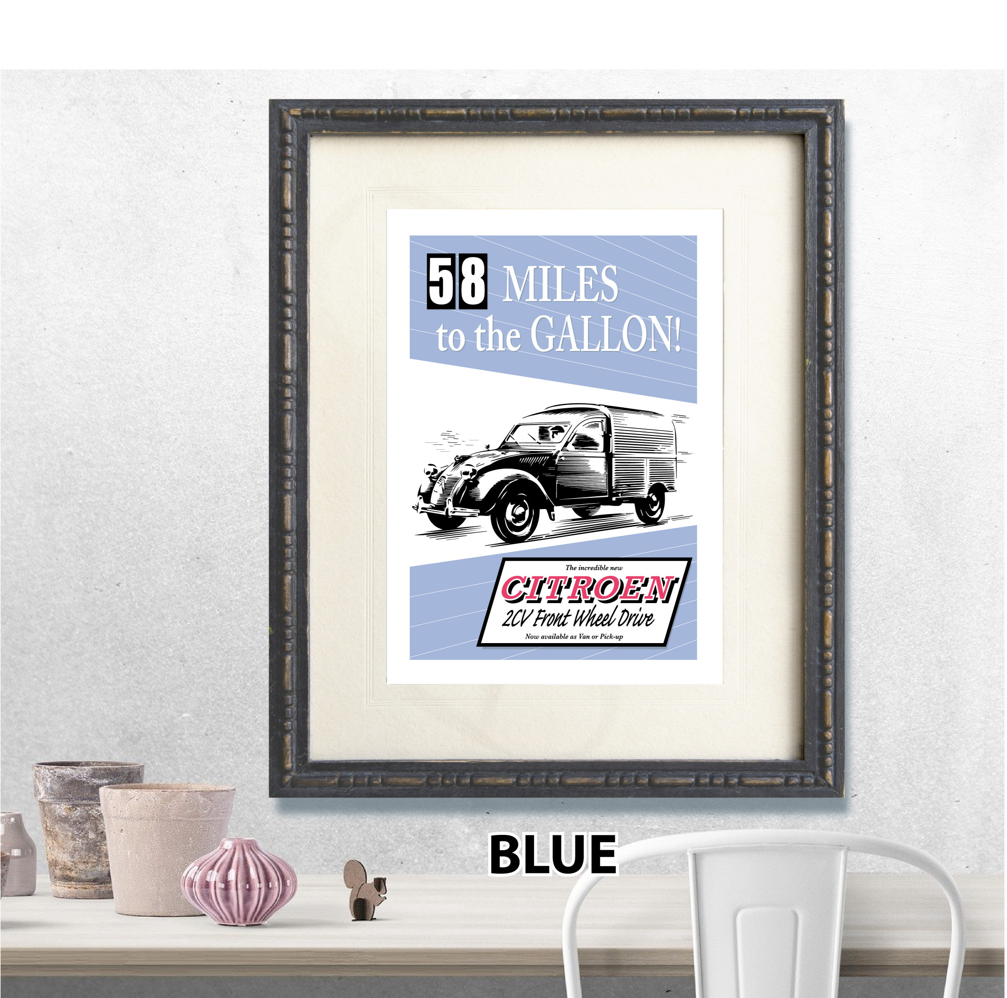 Citroen 2CV van and pick-up, 1950 Vintage Retro Print, Souvenir, Mancave Garage Gift, Poster, Choice of colours, A4, A3, A2 sizes